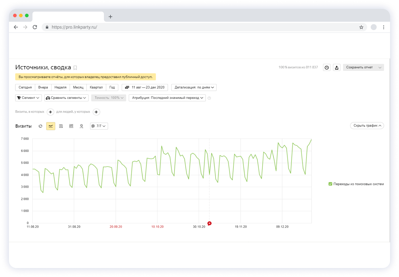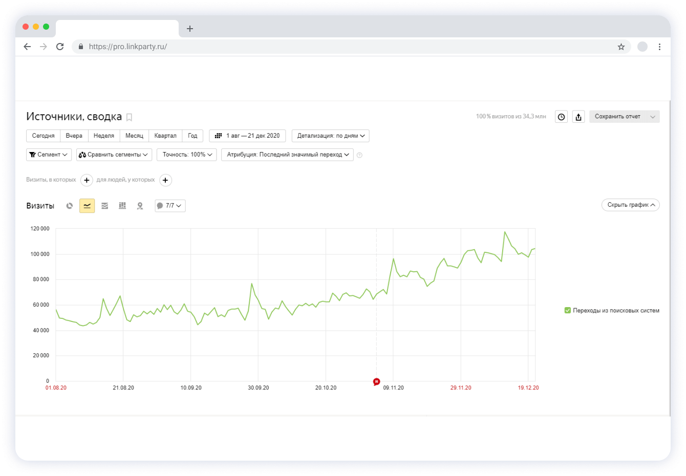 Трафик увеличился на 12% Количество ключевых слов увеличился на 50%